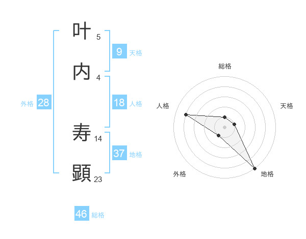 叶内 寿顕さんの地格は37画の5点!