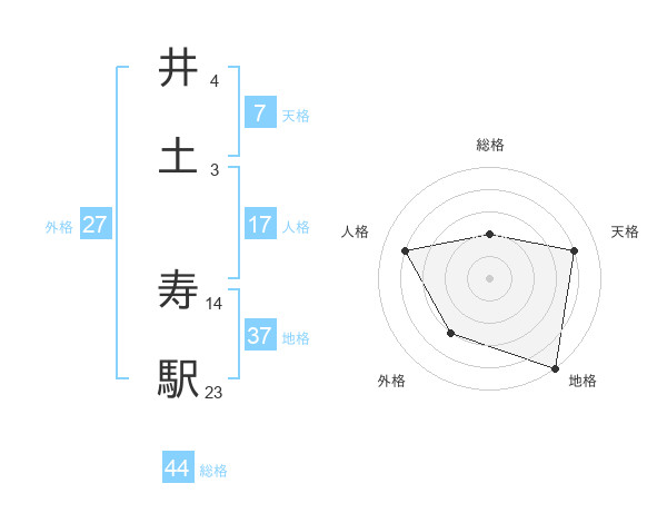 井土 寿駅さんの地格は37画の5点!