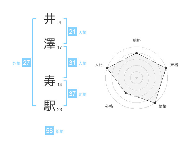 井澤 寿駅さんを姓名の画数から五運を鑑定