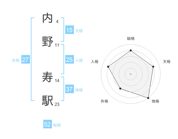 内野 寿駅さんの総格は52画の4点!
