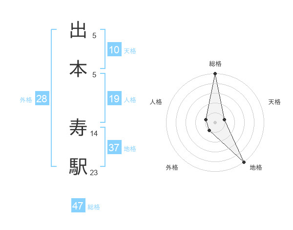 出本 寿駅さんを姓名の画数から五運を鑑定