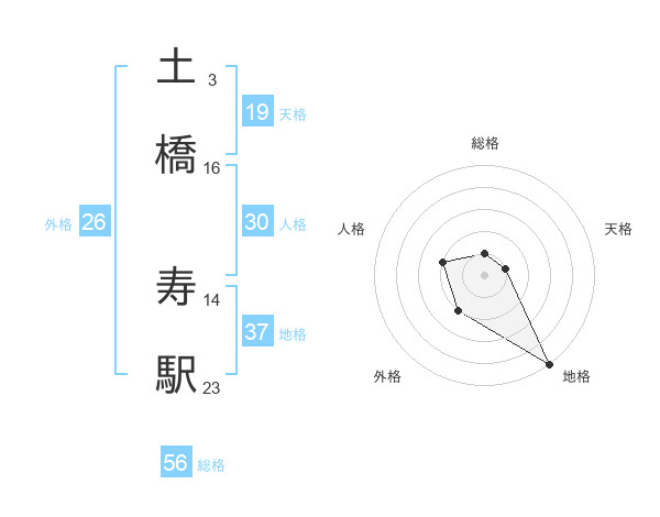 土橋 寿駅さんの総格は56画の1点!