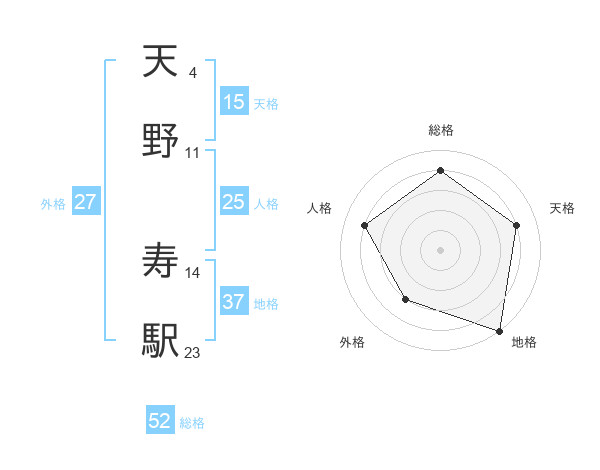 天野 寿駅さんを姓名の画数から五運を鑑定