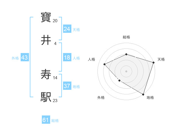 寶井 寿駅さんの天格は24画の5点!