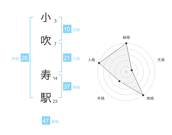 小吹 寿駅さんを姓名の画数から五運を鑑定
