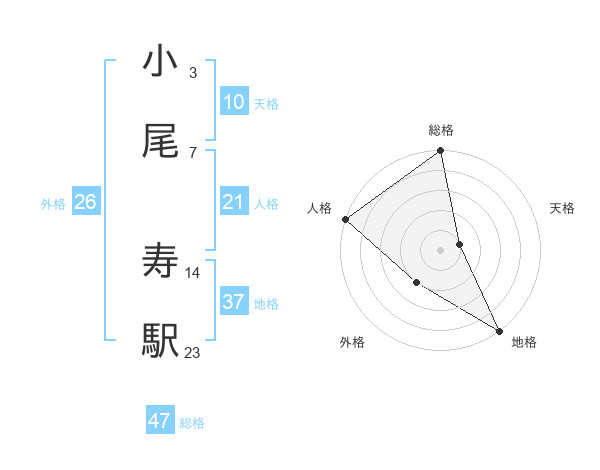 小尾 寿駅さんの総格は47画の5点!