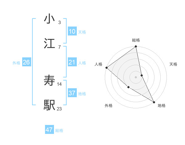 小江 寿駅さんの総格は47画の5点!