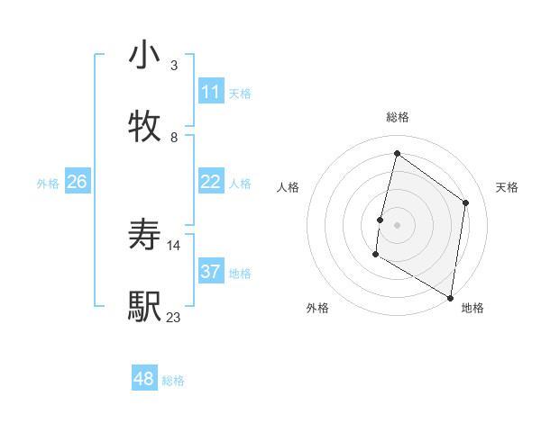 小牧 寿駅さんを姓名の画数から五運を鑑定