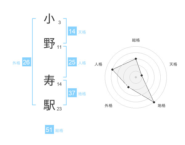 小野 寿駅さんを姓名の画数から五運を鑑定