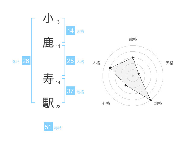 小鹿 寿駅さんを姓名の画数から五運を鑑定
