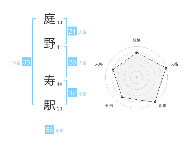 庭野 寿駅さんの総格は58画の4点!