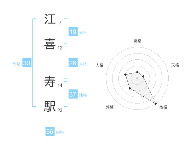 江喜 寿駅さんの地格は37画の5点!