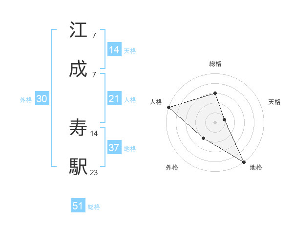 江成 寿駅さんの総格は51画の3点!
