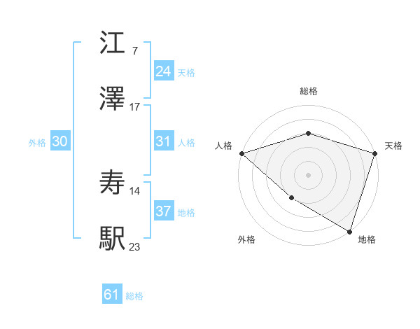 江澤 寿駅さんの総格は61画の3点!