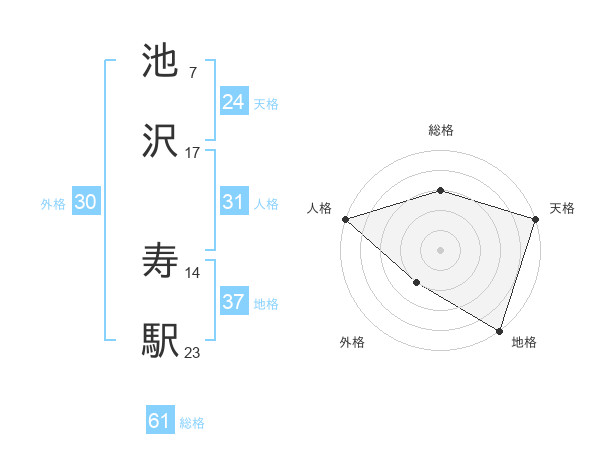 池沢 寿駅さんの総格は61画の3点!