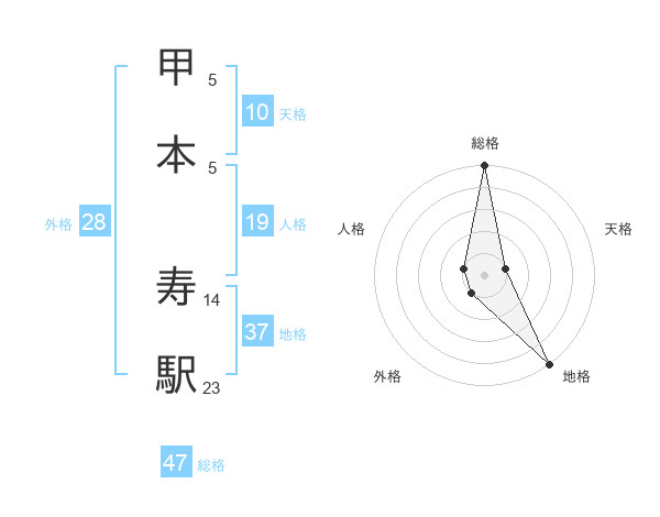 甲本 寿駅さんを姓名の画数から五運を鑑定