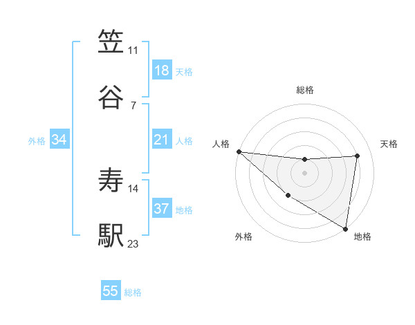 笠谷 寿駅さんを姓名の画数から五運を鑑定