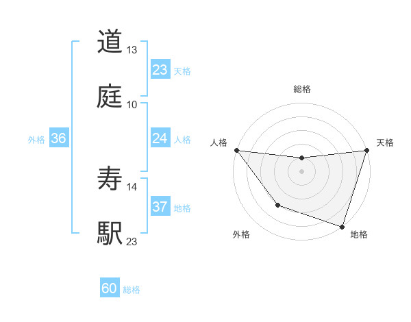 道庭 寿駅さんを姓名の画数から五運を鑑定