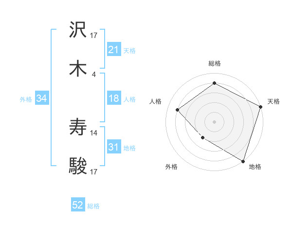 沢木 寿駿さんの天格は21画の5点!