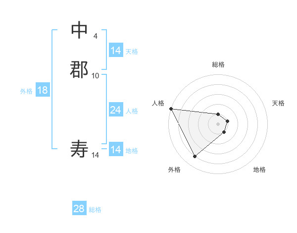 中郡 寿さんの総格は28画の1点!