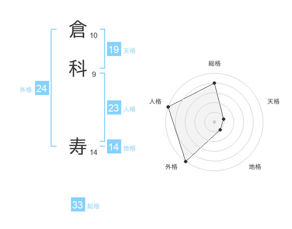 倉科 寿さんの総格は33画の4点!