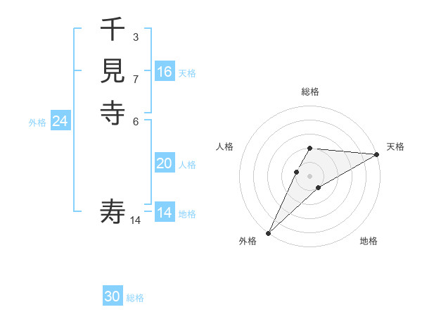 千見寺 寿さんの総格は30画の2点!