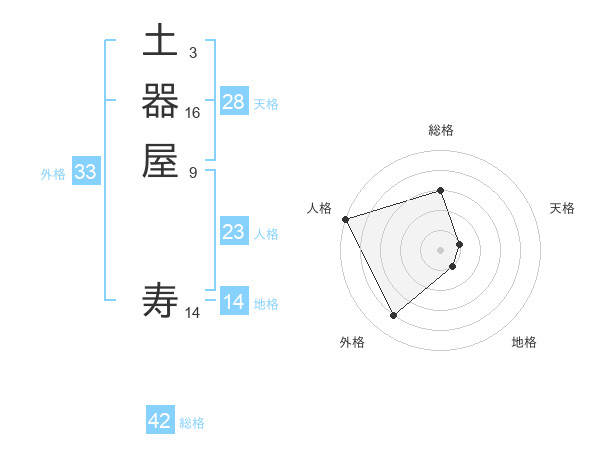 土器屋 寿さんを姓名の画数から五運を鑑定