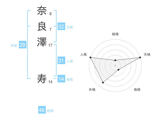 奈良澤 寿さんの総格は46画の1点!