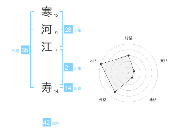 寒河江 寿さんの外格は35画の4点!