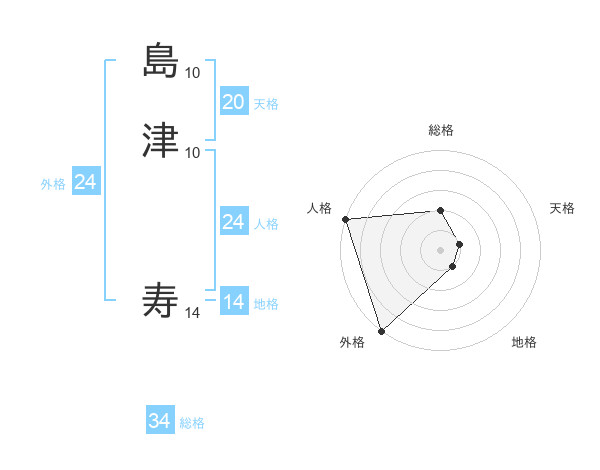 島津 寿さんの総格は34画の2点!