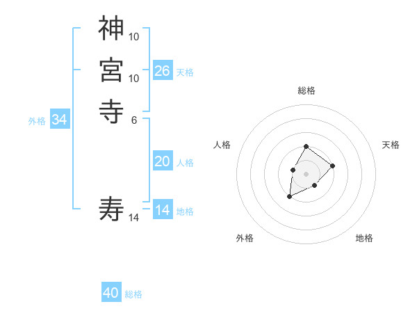 神宮寺 寿さんの総格は40画の2点!