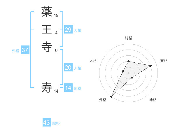 薬王寺 寿さんを姓名の画数から五運を鑑定