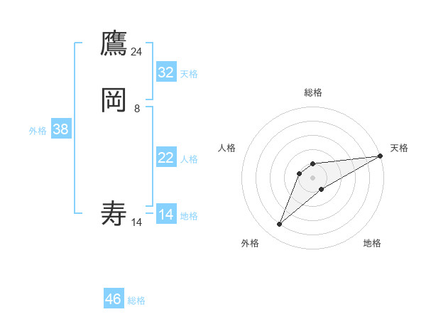 鷹岡 寿さんを姓名の画数から五運を鑑定