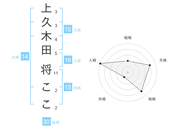 上久木田 将ここさんを姓名の画数から五運を鑑定