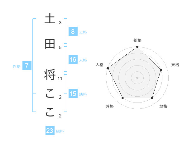 土田 将ここさんの総格は23画の5点