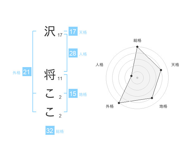 沢 将ここさんの天格は17画の4点!
