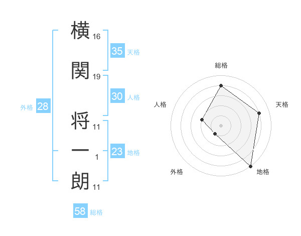 横関 将一朗さんを姓名の画数から五運を鑑定