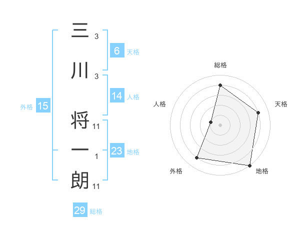 三川 将一朗さんの総格は29画の4点!