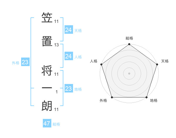 笠置 将一朗さんの総格は47画の5点!