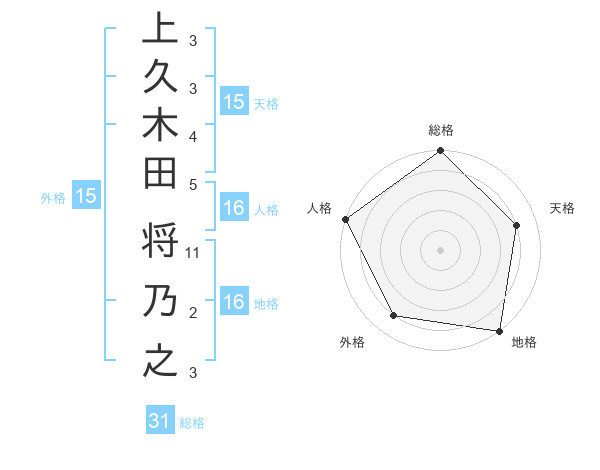 上久木田 将乃之さんを姓名の画数から五運を鑑定