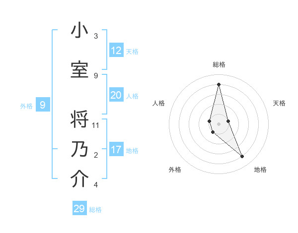 小室 将乃介さんを姓名の画数から五運を鑑定
