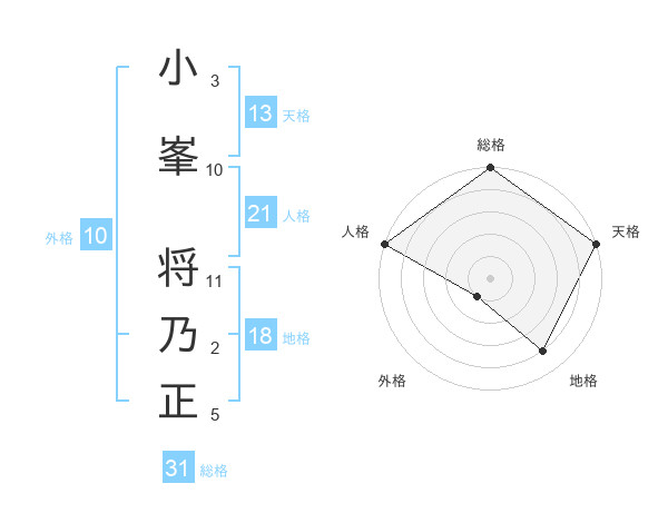 小峯 将乃正さんの総格は31画の5点!