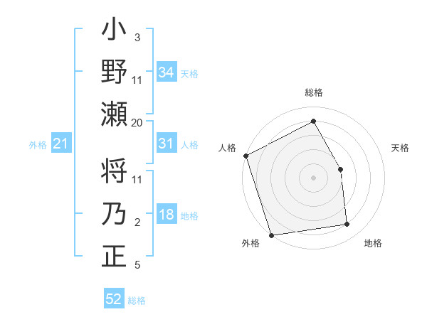 小野瀬 将乃正さんを姓名の画数から五運を鑑定