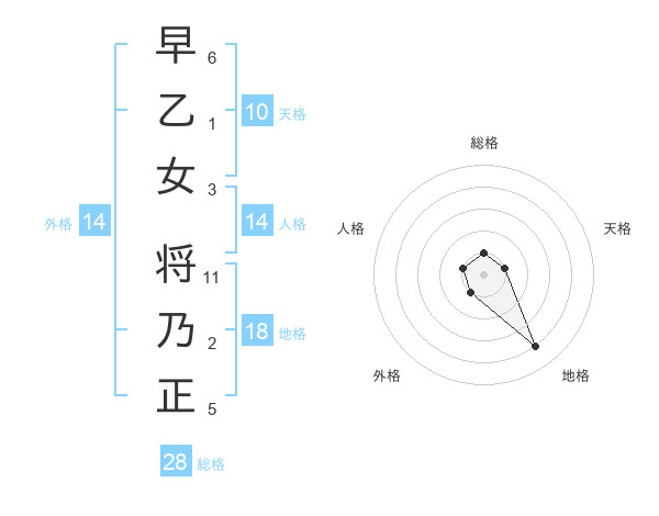 早乙女 将乃正さんを姓名の画数から五運を鑑定