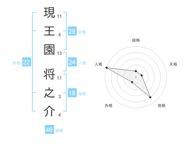 現王園 将之介さんを姓名の画数から五運を鑑定