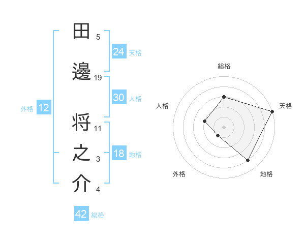 田邊 将之介さんの天格は24画の5点!