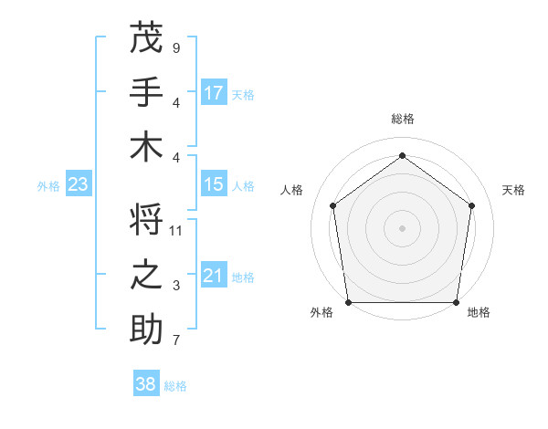 茂手木 将之助さんの外格は23画の5点!