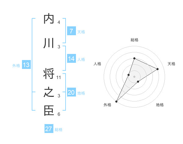 内川 将之臣さんを姓名の画数から五運を鑑定