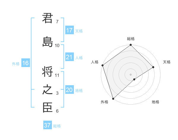 君島 将之臣さんを姓名の画数から五運を鑑定