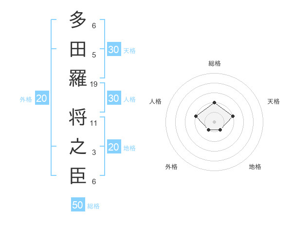 多田羅 将之臣さんを姓名の画数から五運を鑑定